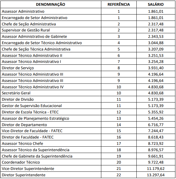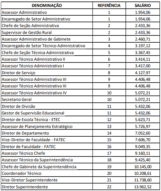 ESCALA SALARIAL - EMPREGOS PÚBLICOS EM CONFIANÇA