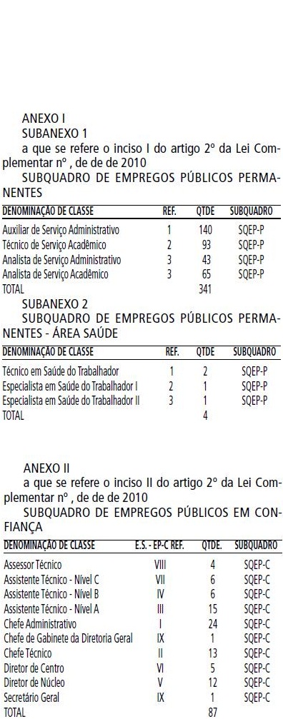 I - Subquadro de Empregos Públicos Permanentes (SQEP-P), em conformidade com os Subanexos 1 e 2 do Anexo I desta lei complementar;