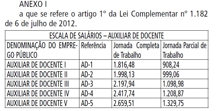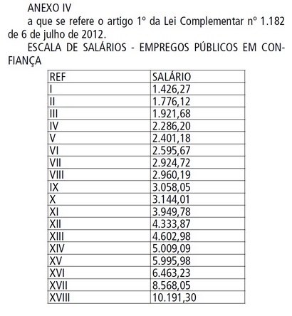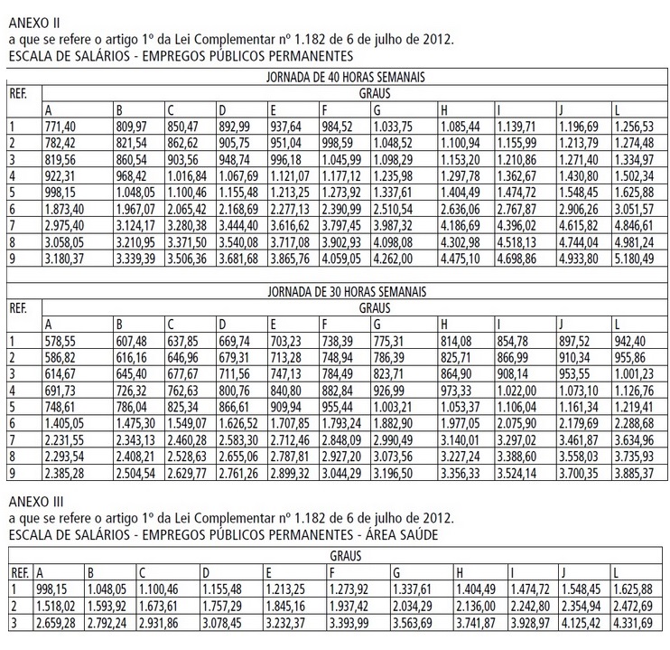 Artigo 1º - Os valores dos salários dos empregados e servidores públicos abrangidos pela Lei Complementar nº 1.044, de 13 de maio de 2008, alterada pela Lei Complementar nº 1.148, de 15 de setembro de 2011, em decorrência de reclassificação, ficam fixados na conformidade dos Anexos I, II, III e IV desta lei complementar.