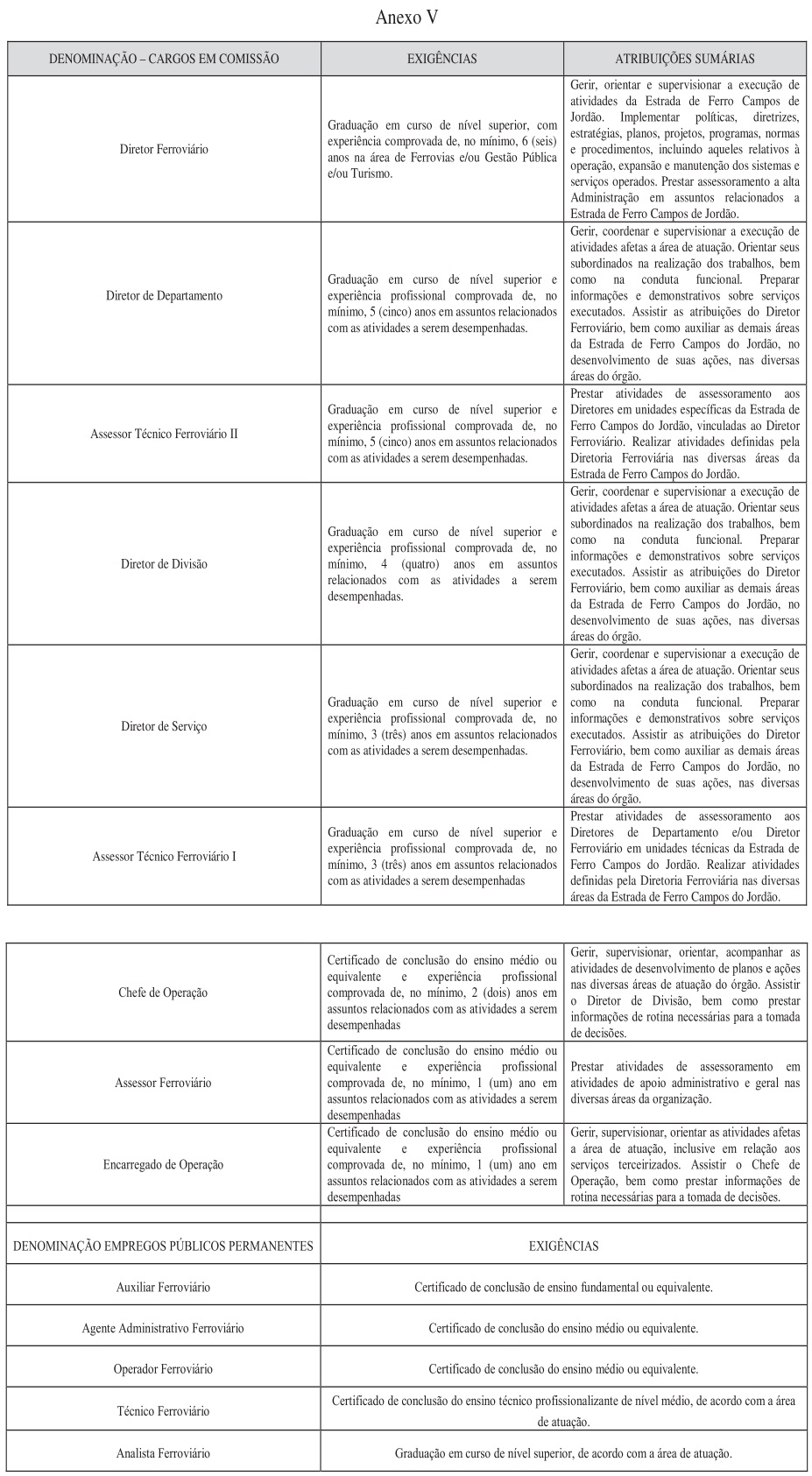 Artigo 10 - As atribuições básicas e os requisitos mínimos para ingresso nos empregos públicos permanentes e nos cargos em comissão que integram o Quadro de Pessoal da EFCJ são os estabelecidos no Anexo V desta lei complementar. (NR)
