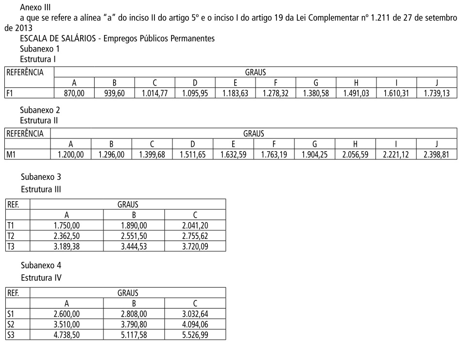 - Anexo III com redação dada pela Lei Complementar n° 1.425, de 02/06/2025, com efeitos a partir do primeiro dia do mês subsequente ao de sua publicação.