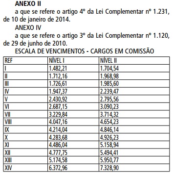 III - Escala de Vencimentos - Cargos em Comissão, constituída de 2 (dois) níveis com 14 (quatorze) referências cada, representados por algarismos romanos, na conformidade do Anexo IV desta lei complementar.” (NR);