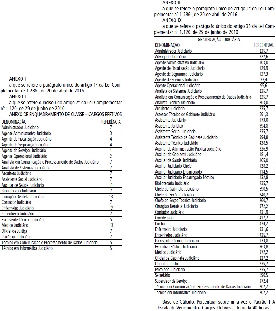 “Artigo 36 - Aos servidores titulares do cargo de Oficial de Justiça do Quadro do Tribunal de Justiça Militar do Estado de São Paulo abrangidos por este Plano de Cargos e Carreiras não mais se aplicam as disposições do artigo 7º da Lei Complementar nº 290, de 15 de julho de 1982, que trata da ajuda de custo mensal, e os artigos 9º e 10 da Lei Complementar nº 516, de 9 de junho de 1987, que trata do regime especial de trabalho judicial, ficando-lhes concedida, em substituição a essas vantagens, uma gratificação referente ao Regime Especial de Trabalho Externo Judicial - RETEJ, a ser calculada com base em 31,74% (trinta e um inteiros e setenta e quatro décimos por cento) sobre o valor do padrão do cargo em que estiver enquadrado, na jornada de trabalho de 40 (quarenta) horas semanais.