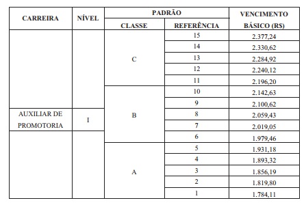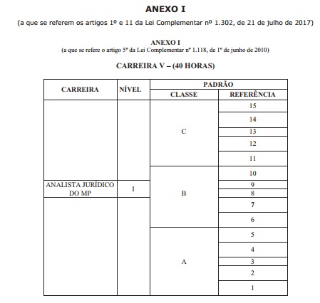 Artigo 12 - Os cargos existentes de Analista de Promotoria I (Assistente Jurídico) ficarão reestruturados a partir de 1º de agosto de 2017, alterando-se a denominação para Analista Jurídico do Ministério Público e enquadrados, mantida a correlação entre os padrões vigentes em 31 de julho de 2017, na Carreira V do Quadro de Pessoal do Ministério Público do Estado de São Paulo.