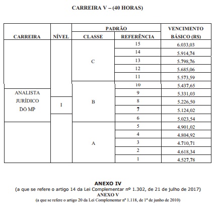 V - Analista Jurídico do Ministério Público, com grau de escolaridade correspondente ao do ensino superior.” (NR).