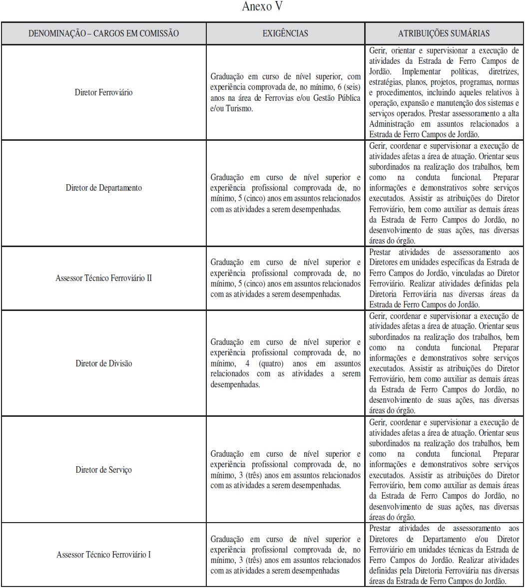 Parágrafo único - Os detalhamentos complementares das atribuições dos cargos em comissão de que trata este artigo, se necessário, far-se-ão mediante publicação de ato específico do Diretor Ferroviário, observadas as respectivas áreas de atuação.” (NR);