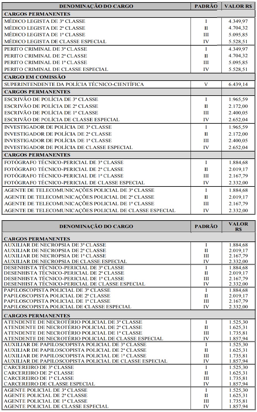 I - Anexo I, correspondente aos integrantes das carreiras policiais civis, da Secretaria de Segurança Pública, de que trata o artigo 2º da Lei Complementar nº 731, de 26 de outubro de 1993, alterado pelo inciso IX, do artigo 1º da Lei Complementar nº 1.317, de 21 de março de 2018;