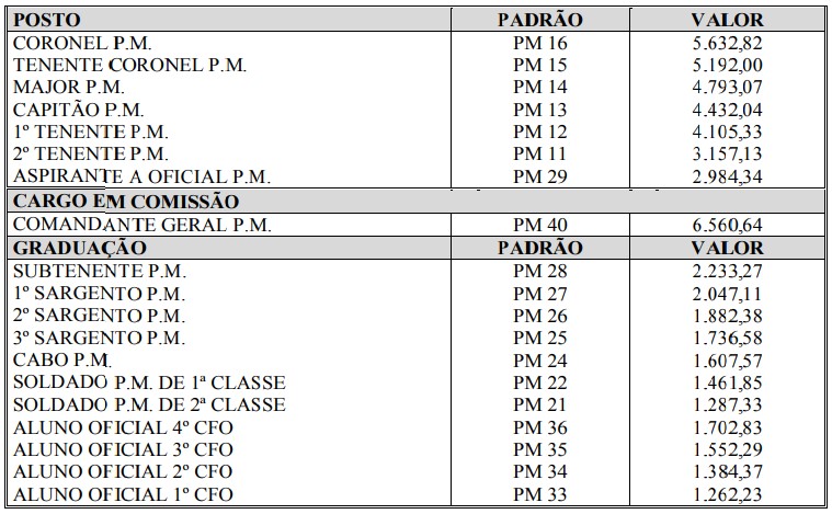 III - Anexo III, correspondente aos integrantes da Polícia Militar, de que trata o artigo 2º da Lei Complementar nº 731, de 26 de outubro de 1993, alterado pelo inciso XI, do artigo 1º da Lei Complementar nº 1.317, de 21 de março de 2018;