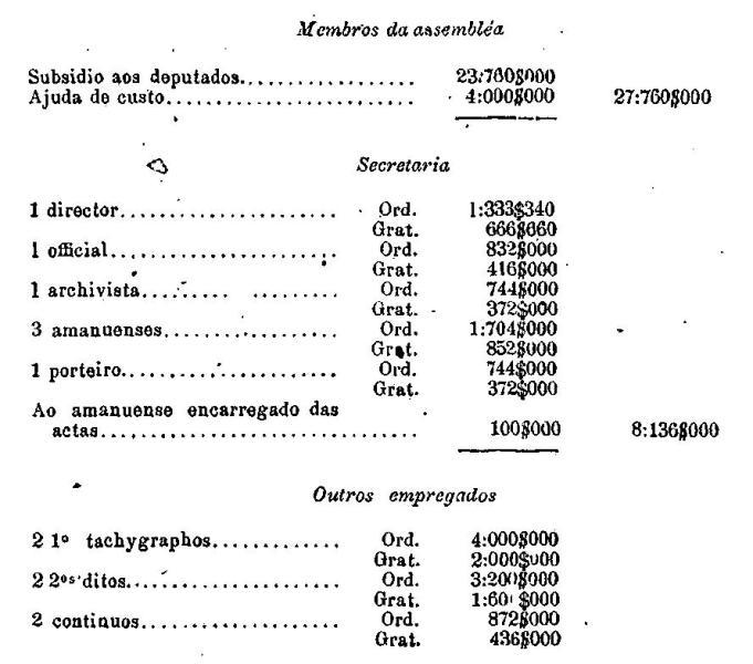 ajuda de custo aos membros da assembléa nas sessões extraodinarias e