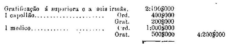 vestuarios e medicamento dos enfermos, e salario dos serventes.