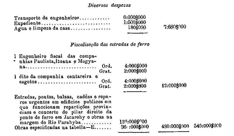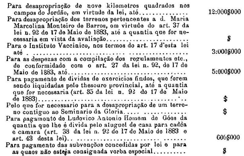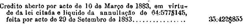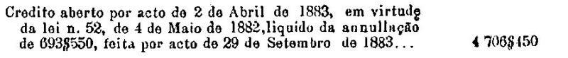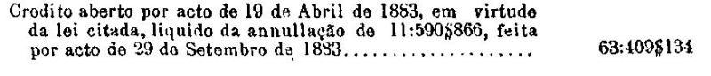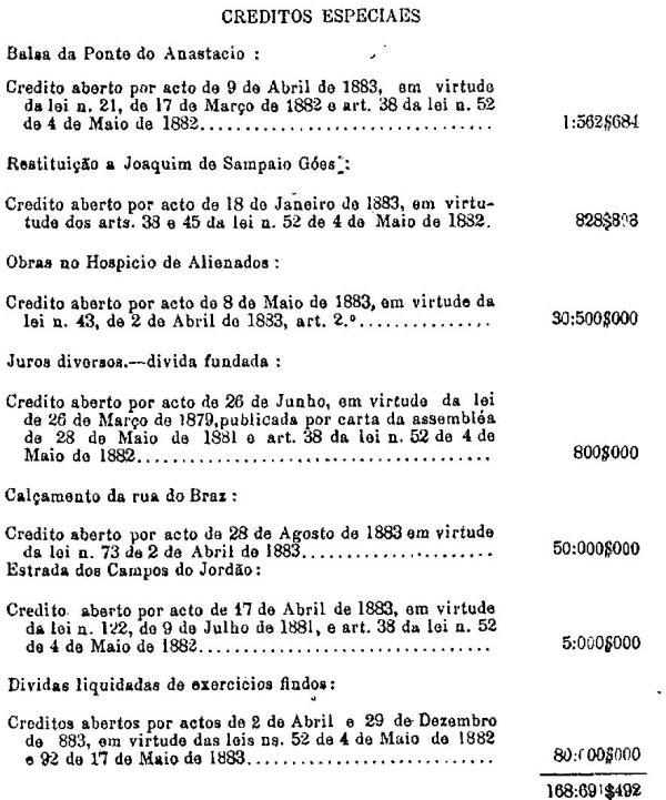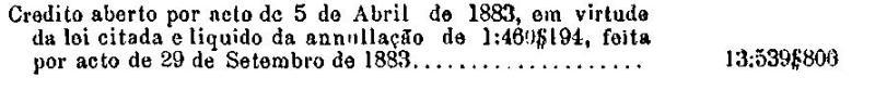 de 1883 e os créditos especiaes e supplemetäres abertos constantes da tabella