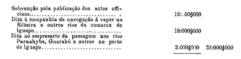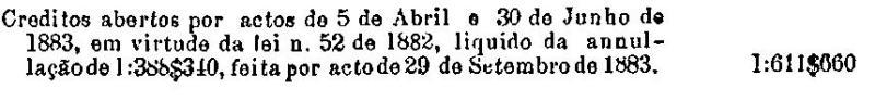 verbas effectuadas om virtude do acto do governo de 29 de Setembro de 1883, na