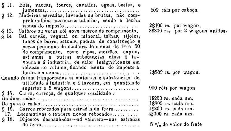 6.ª - Os §§ d'esta tabella correspondem ao numero das tabellas da tarifa