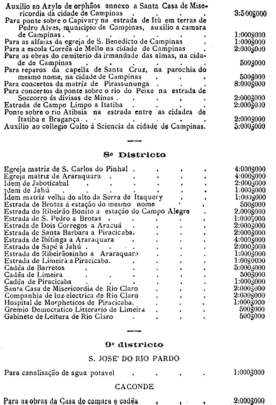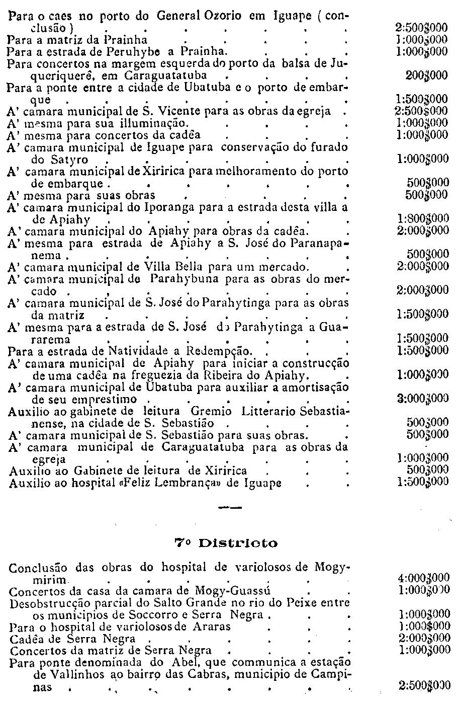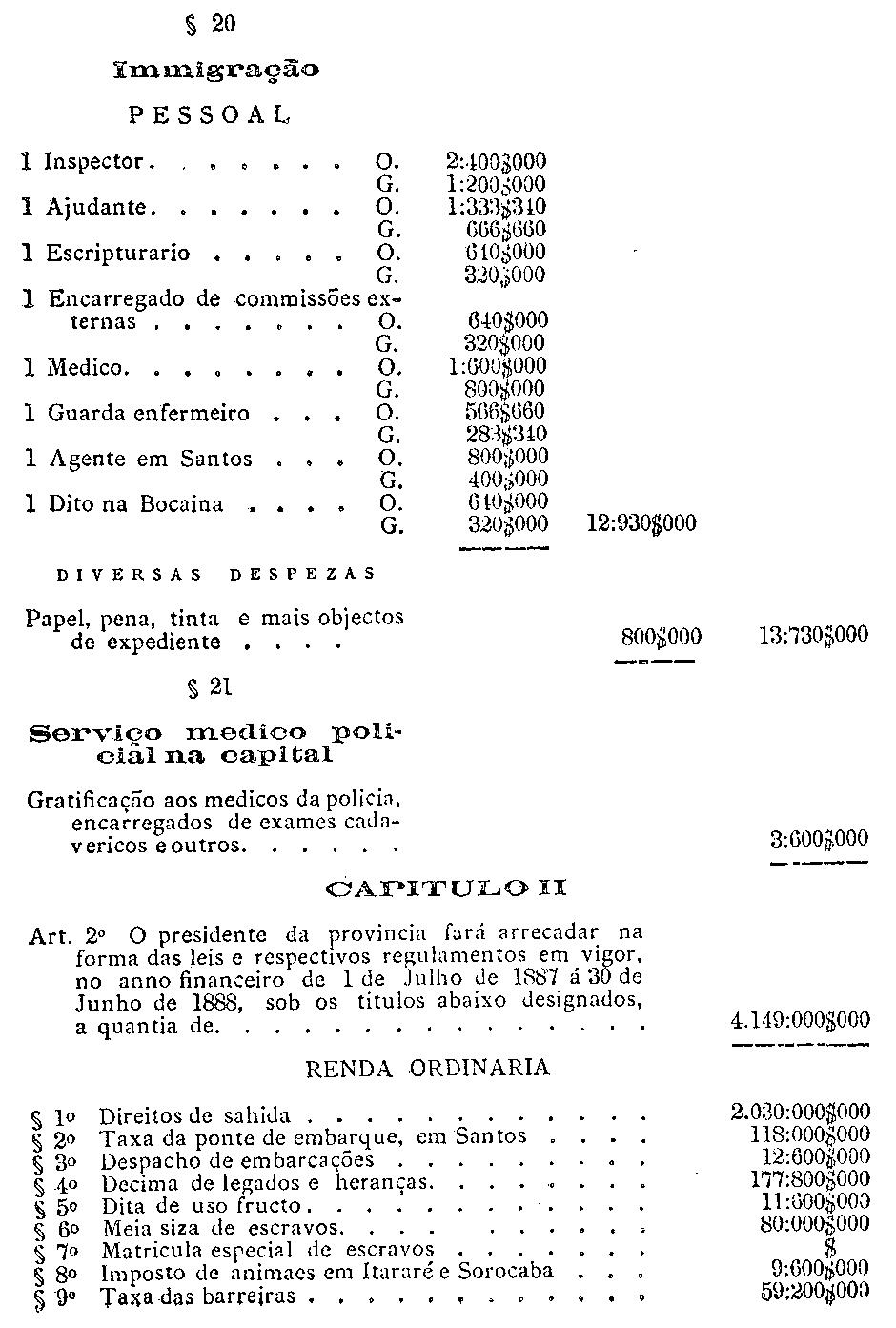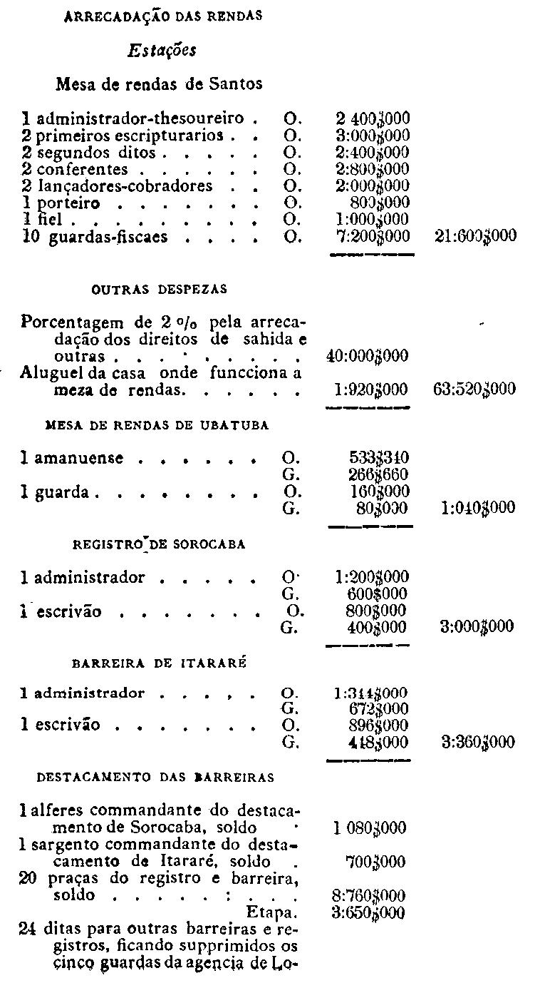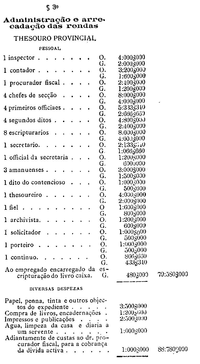 da capital, serviço da colonisação provincial e para a cobrança do imposto