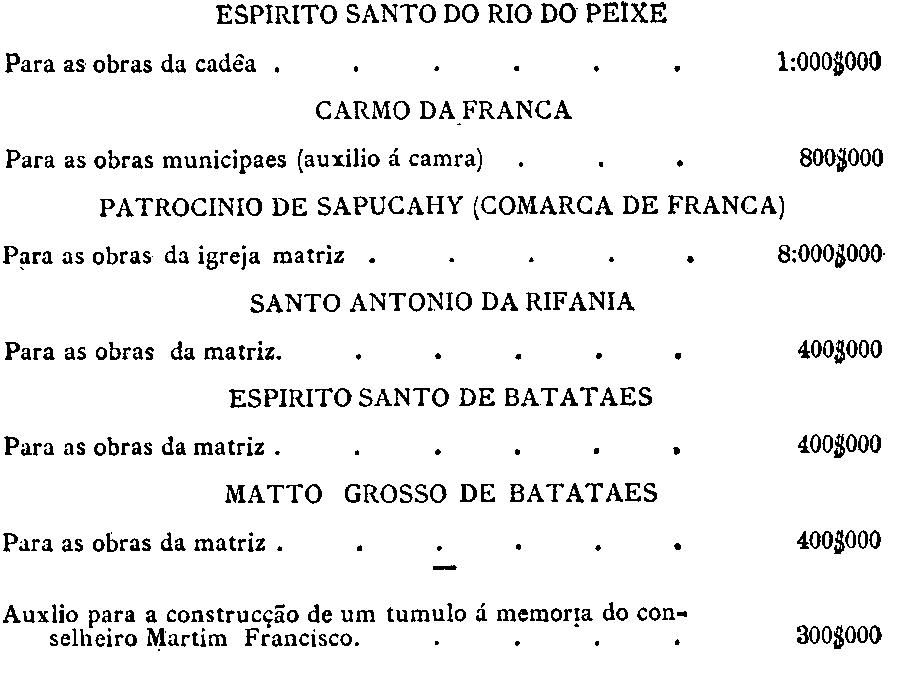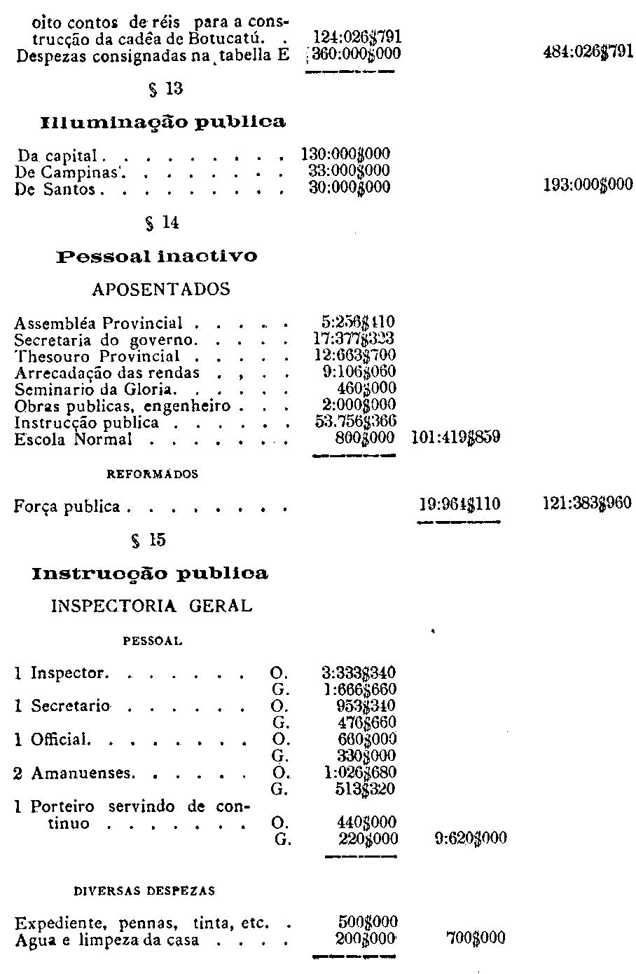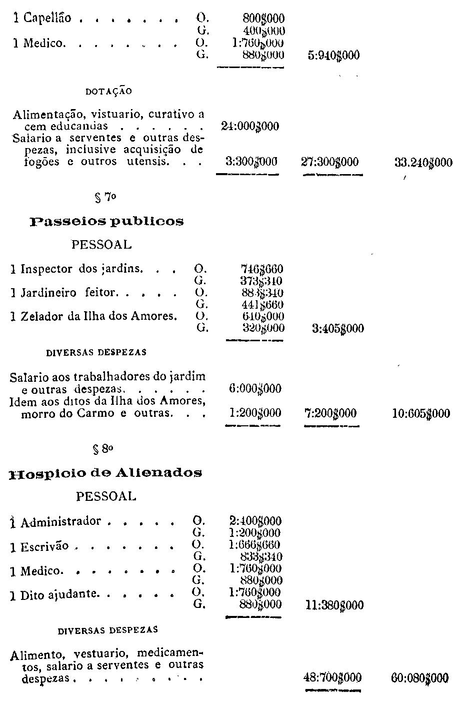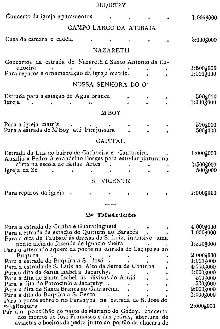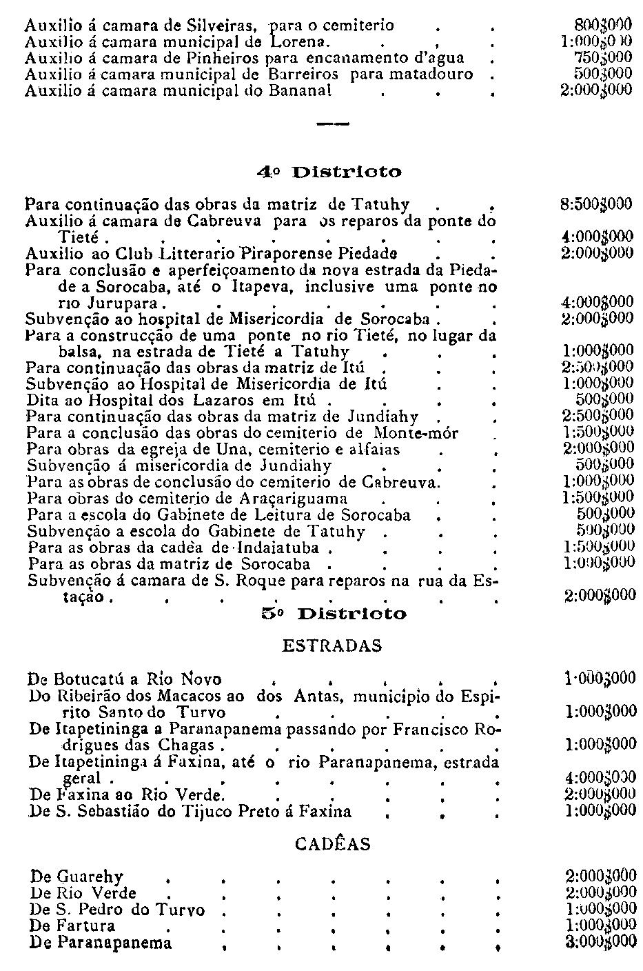 da capital, serviço da colonisação provincial e para a cobrança do imposto