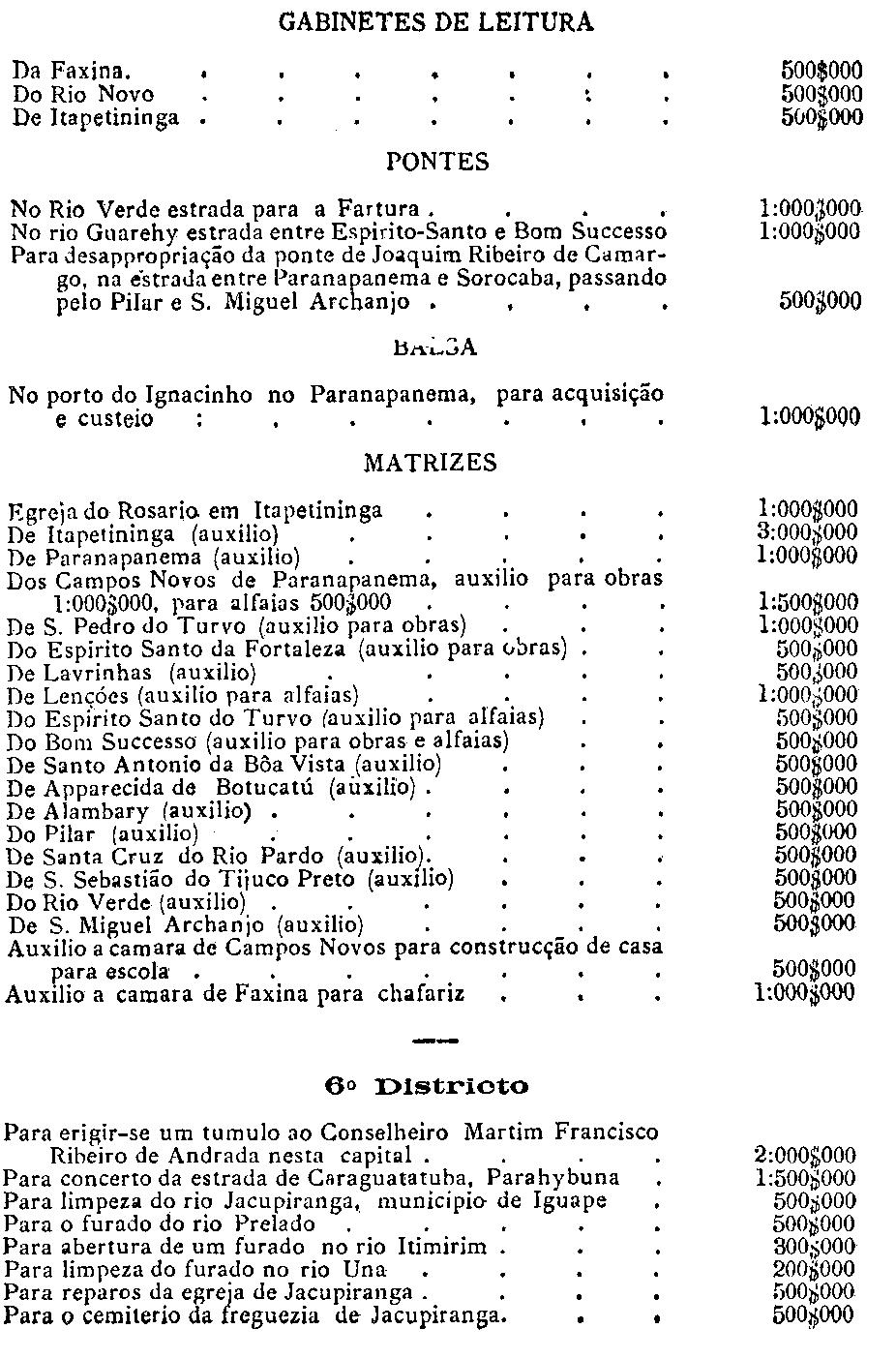 itenerarias, geologicas e agricolas da provincia, até a quantia de cincoenta