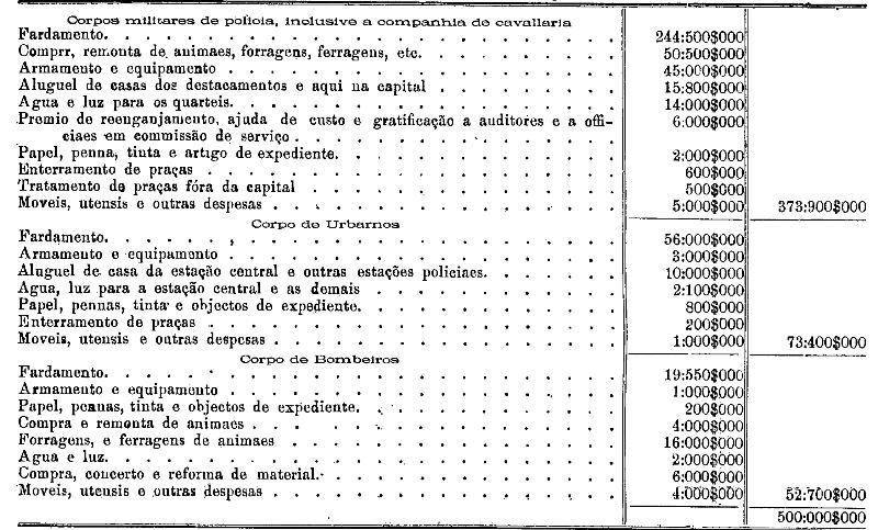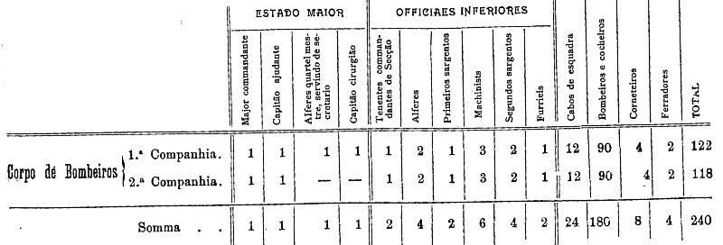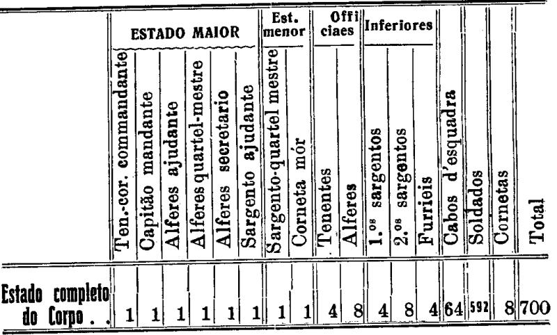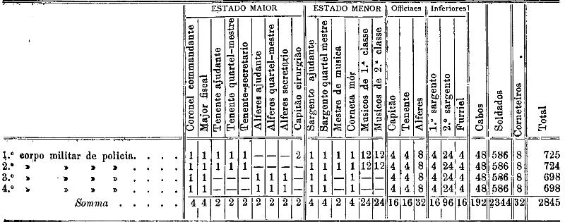 Cavallaria, um corpo de Urbanos e um corpo de Bombeiros.