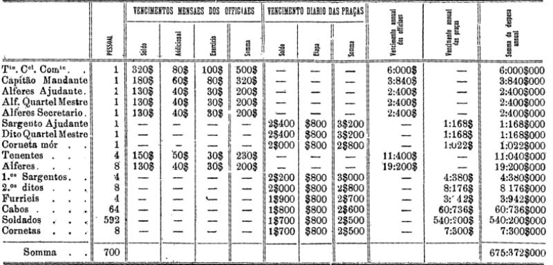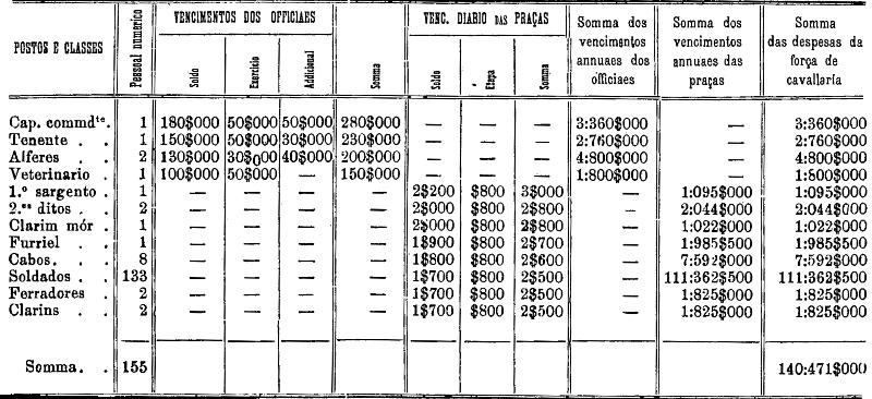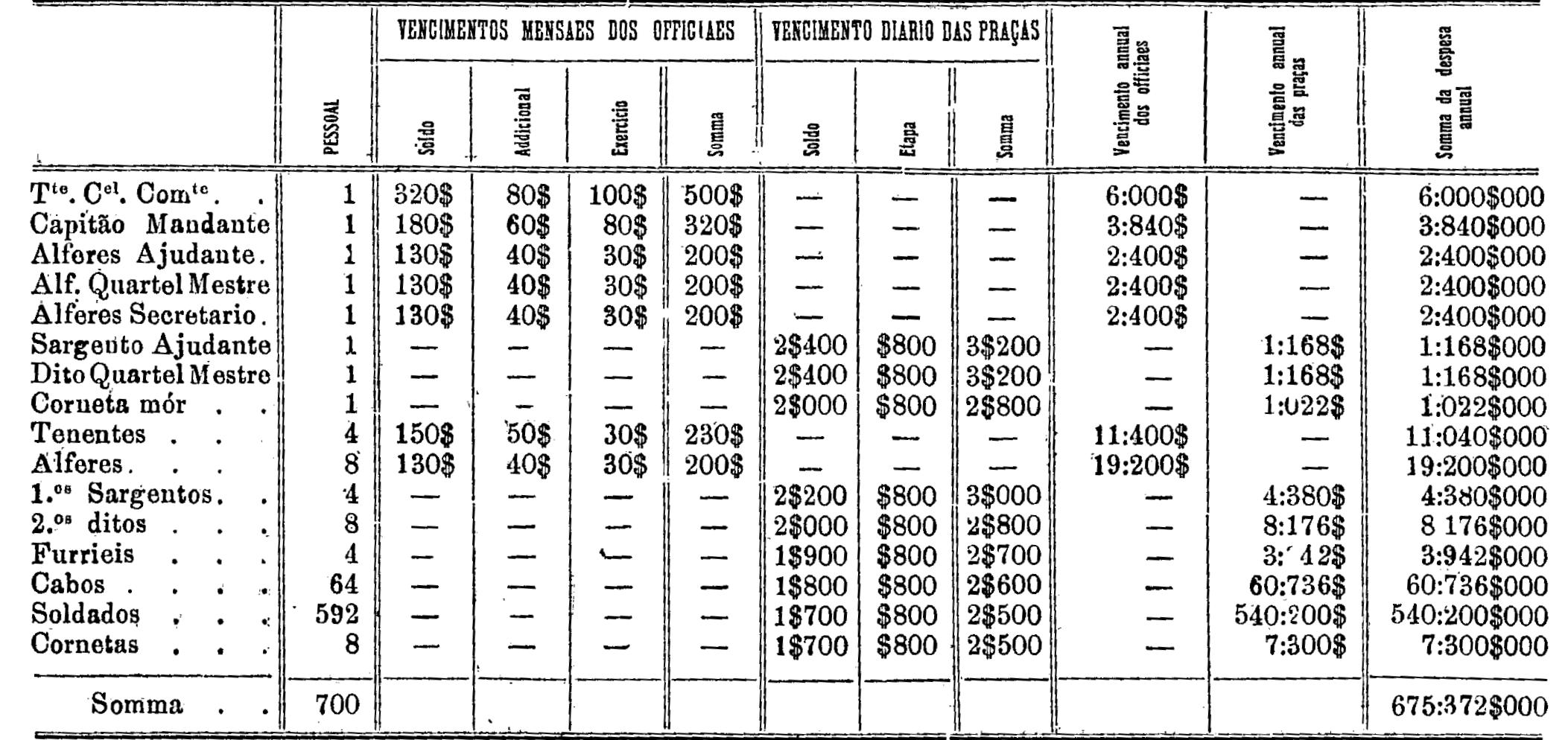 VENCIMENTOS DOS OFFICIAES E PRAÇAS DA COMPANHIA DE CAVALLARIA DO