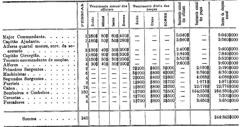 vencimentos dos officiaes e praças do Corpo de Bombeiros do