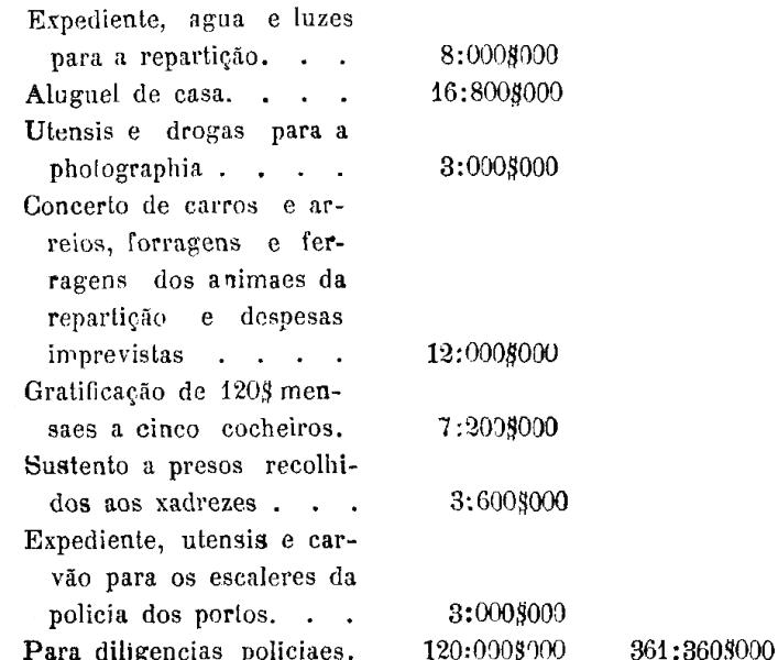 No § 6.º - Repartição da Policia - pelo que faltar para diligencias policiaes e outras despesas urgentes.