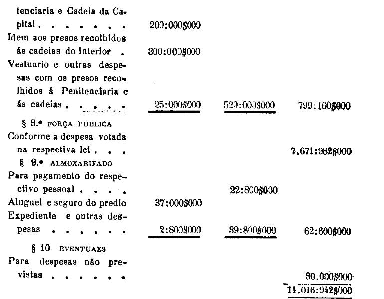 se verificar no § 7.º - Prisões do Estado - nas rubricas alimentação e