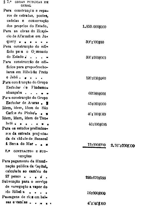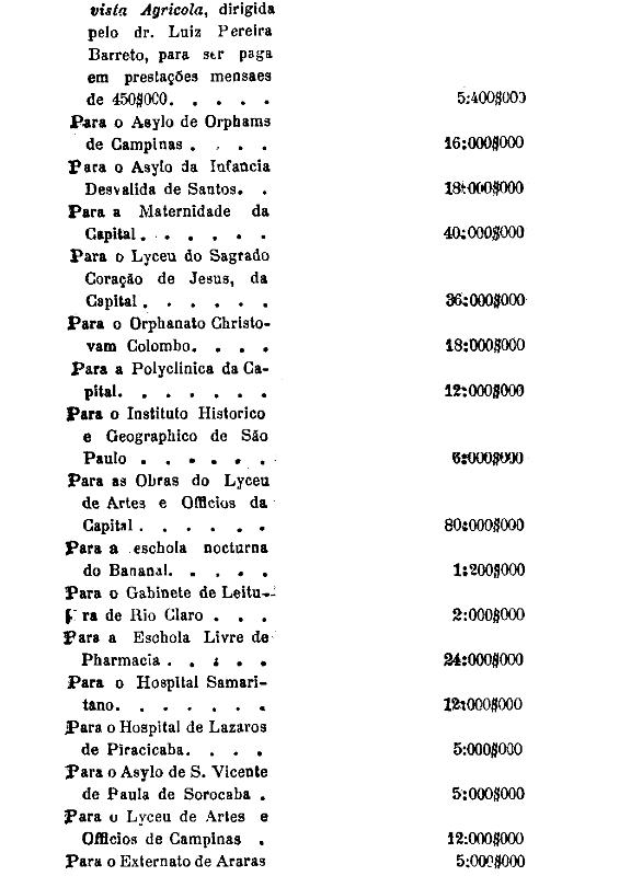 da Agricultura, Commercio e Obras Publicas, a quantia
