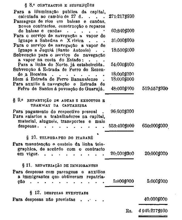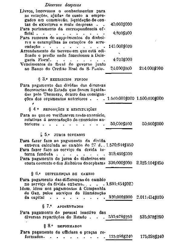 orçamento e despesa do Estado de S. Paulo para o exercicio de