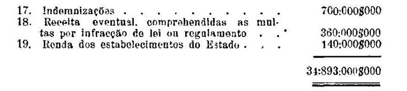 Thesouro: Inspector, 12:000$000; contador, 9:600$000; official-maior, 8:400$000;
