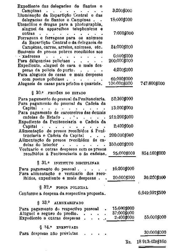 do Estado - Penitenciaria: Escrivão, 4:800$000; almoxarife, 4:800$000 - Cadeia da