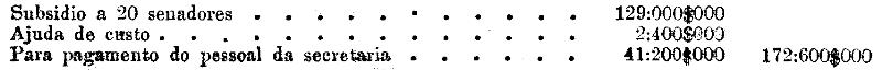 § 2.º - Senado. - para pagamento de subsidios e ajuda de custo a senadores, serviço tachygraphico e publicação de debates nas sessões extraordinárias ou prorogações.