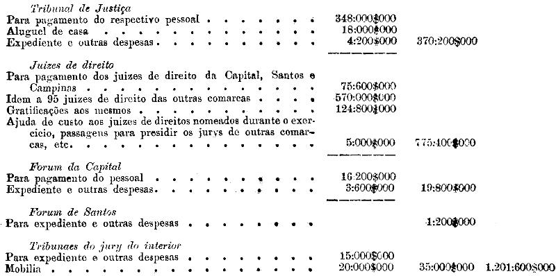 serviços a cargo da Secretaria da Justiça, a quantia de
