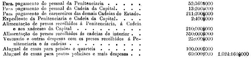 § 7.º - Prisões do Estado - para pagamento de alimentação, vestuario e curativos de presos pobres, recolhidos á Penitenciaria, cadêa da capital e das localidades do interior.