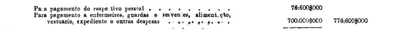 § 22. Hospício de Alienados-pelo que faltar para pagamento de sustento e vestuario a dementes recolhidos ao Hispicio.