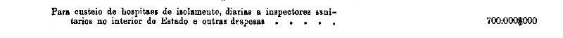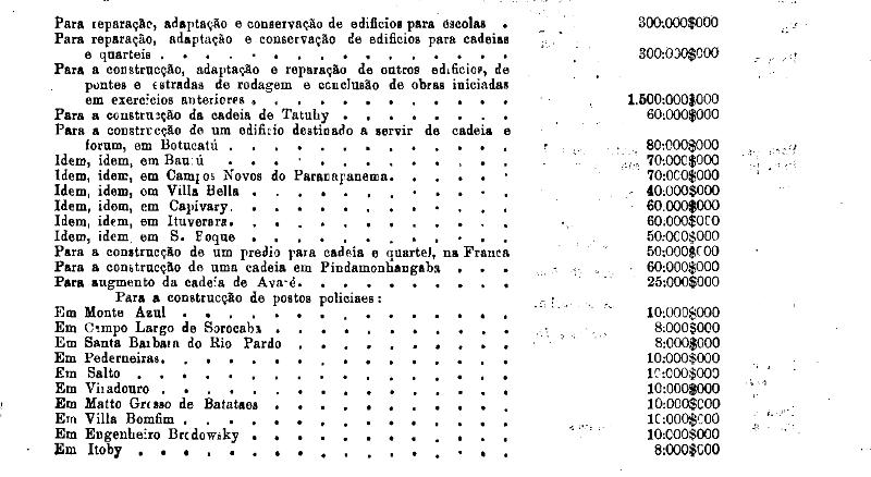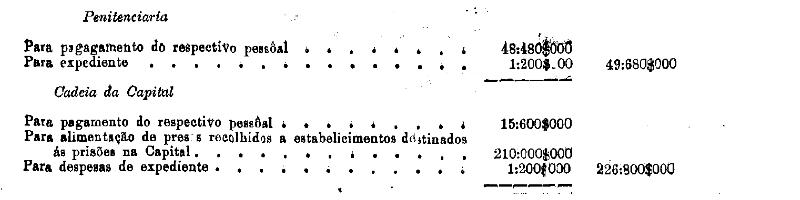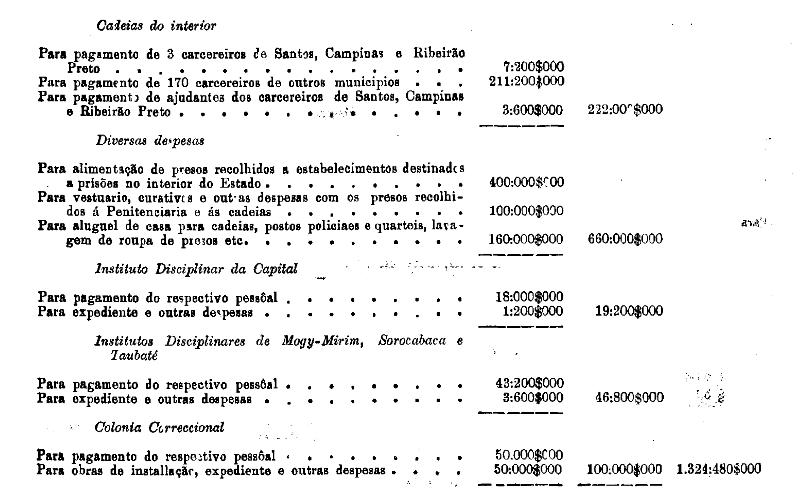 § 6.º Prisões do Estado - Para pagamento de alimentação, vestuario e curativo de presos pobres recolhidos á Penitenciaria, cadeia da Capital e das localidades do interior.