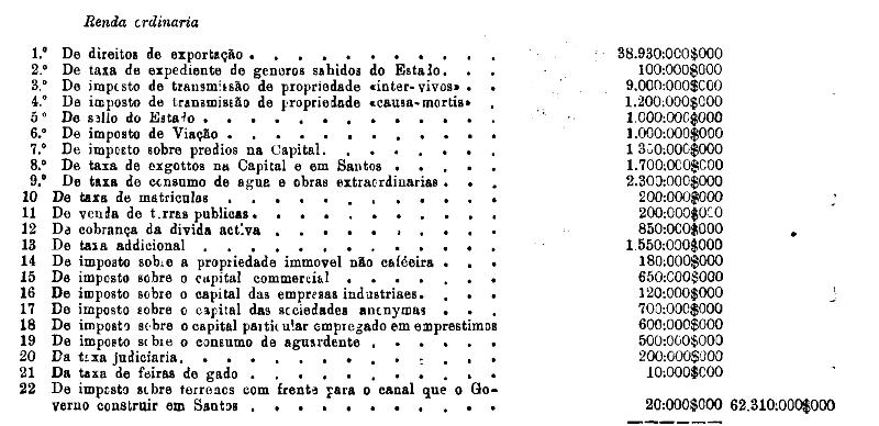 Artigo 10. A receita geral do Estado de S. Paulo, para o