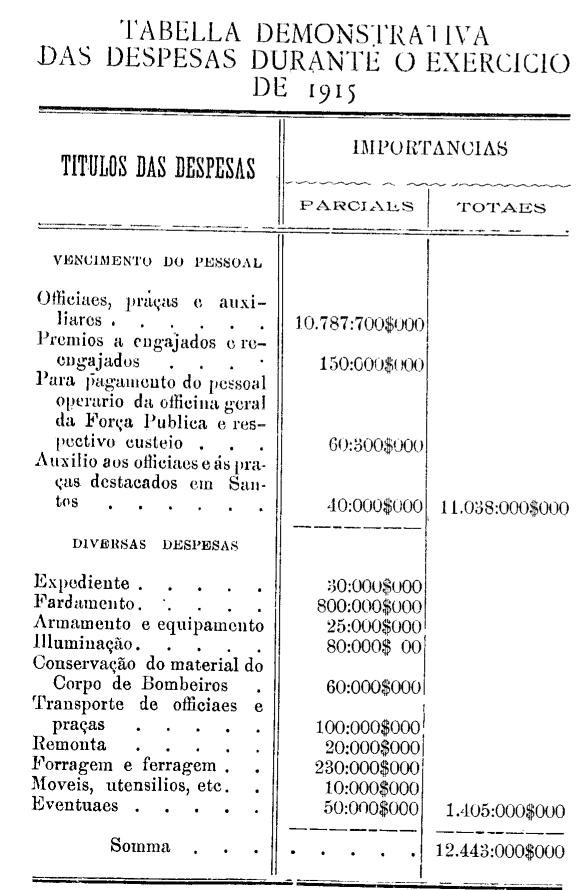 e as demais despesas da Força Publica, no anno de 1915, serão os