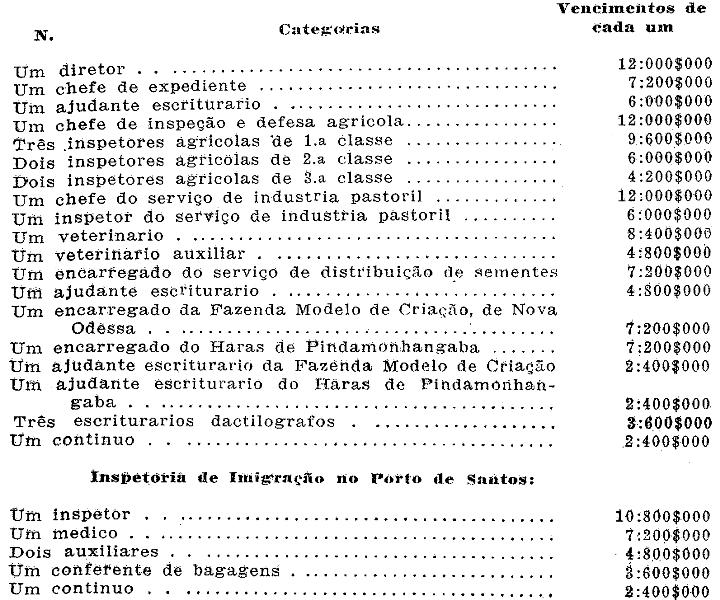 colonização e em os vencimentos de 250$000 a 500$000 mensaes.
