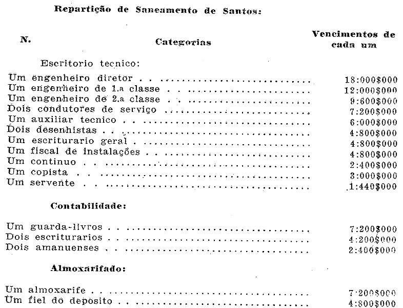 Artigo 9.º - Fica creada a Repartição de Saneamento de Santos, com o seguinte pessoal: