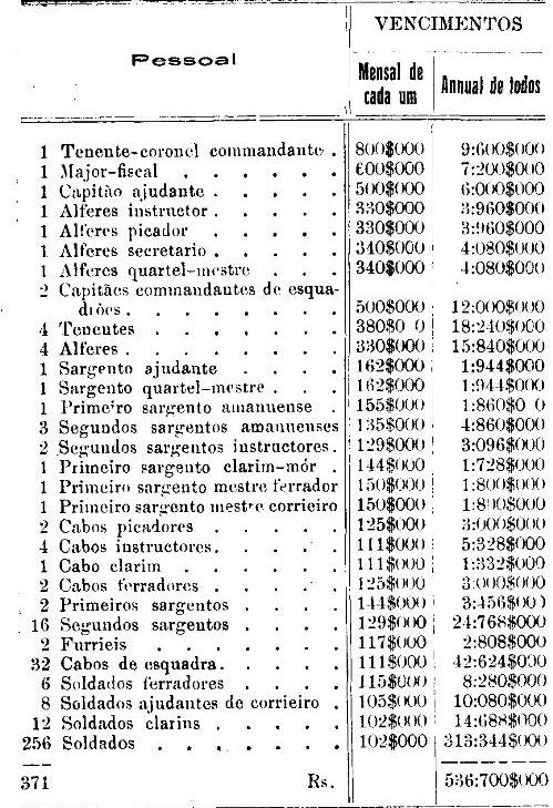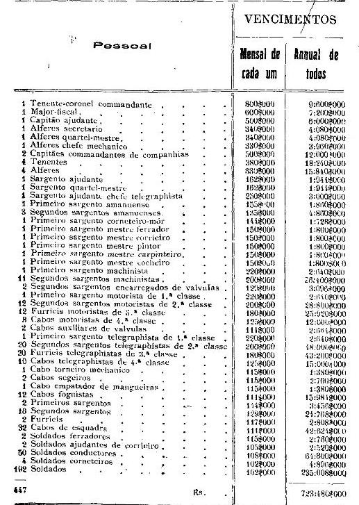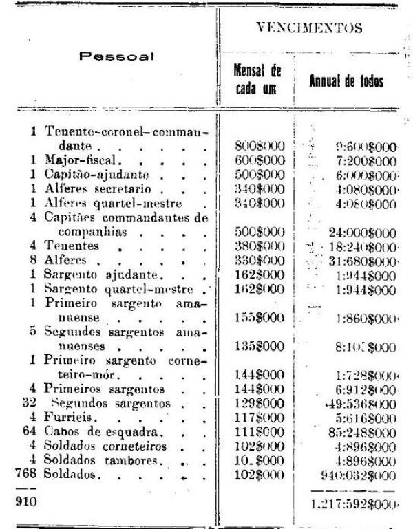 50$000 mensaes aos officiaes e a de 15$000 mensaes ás praças, quando