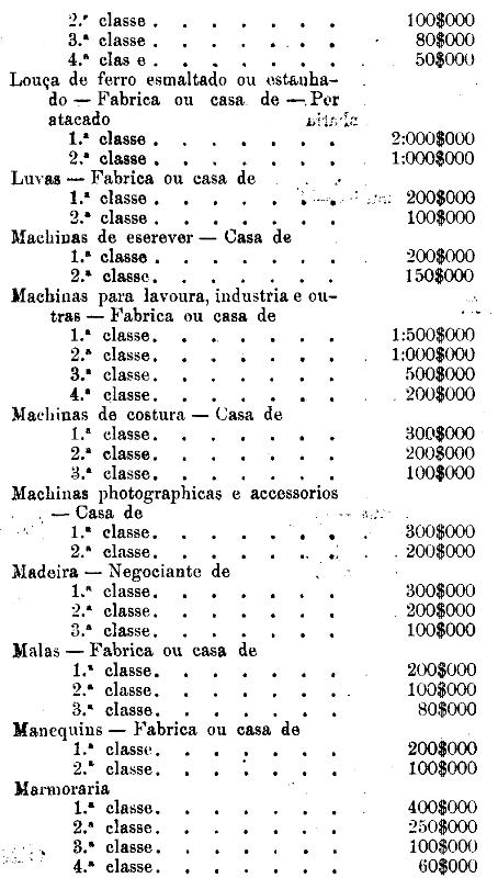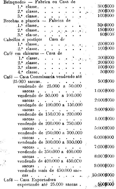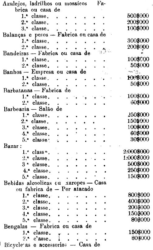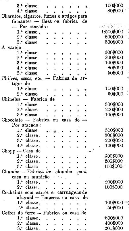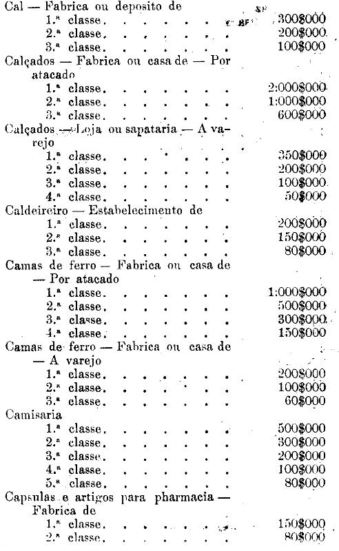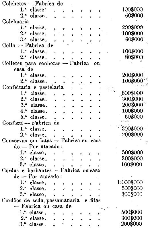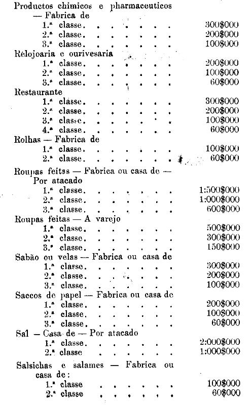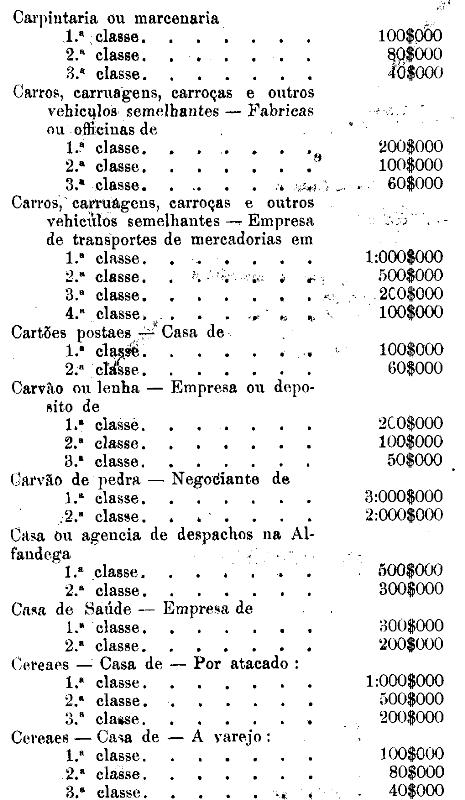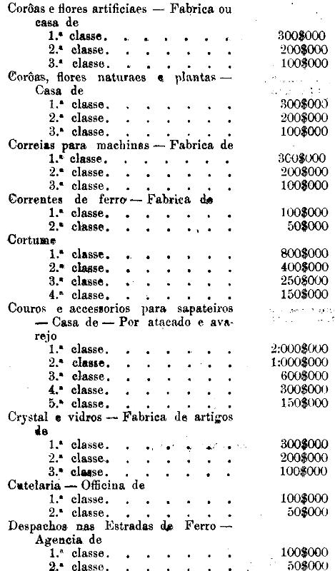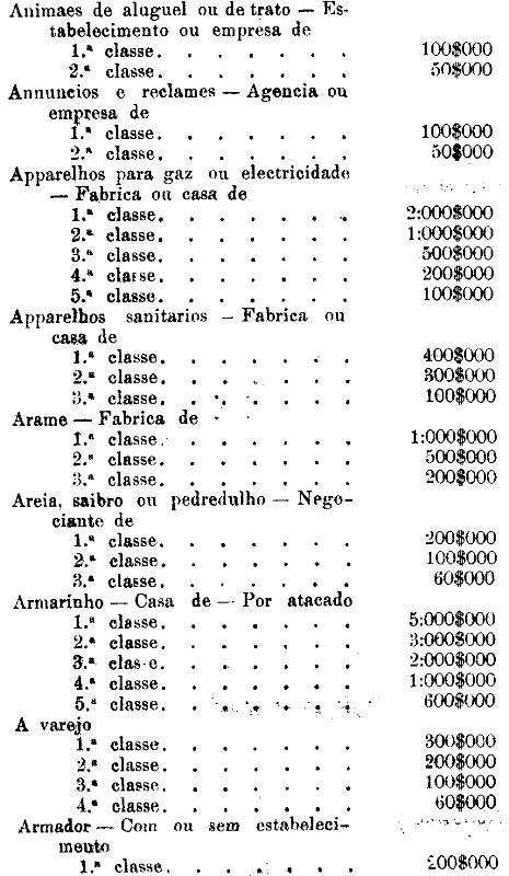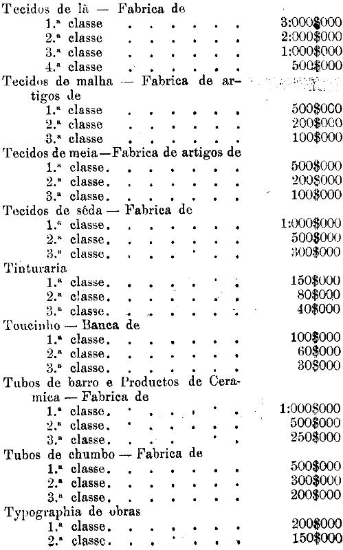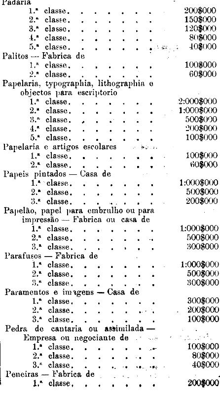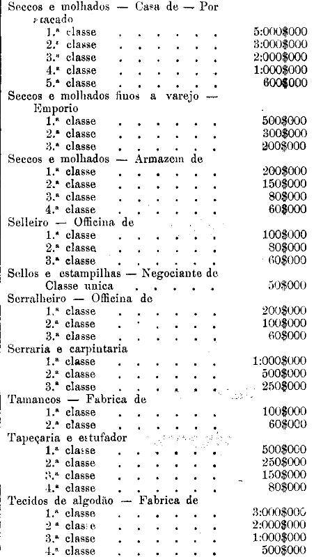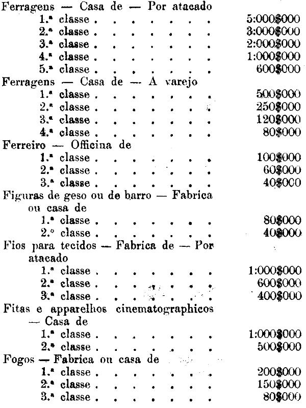 Tabella para cobrança do imposto de comercio e de empresas industriaes, a que se refere o artigo 3.º da presente lei.
