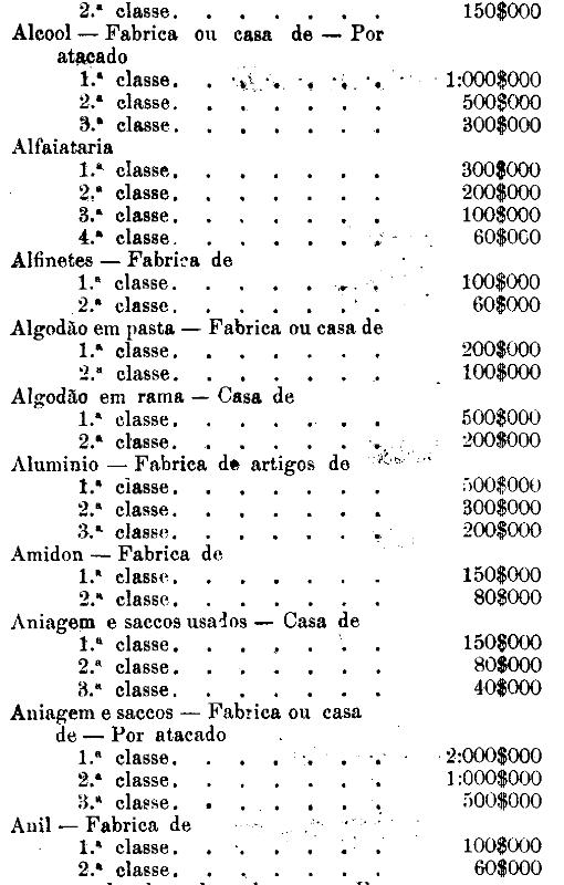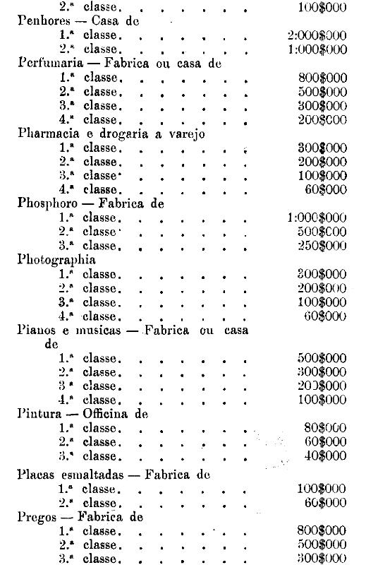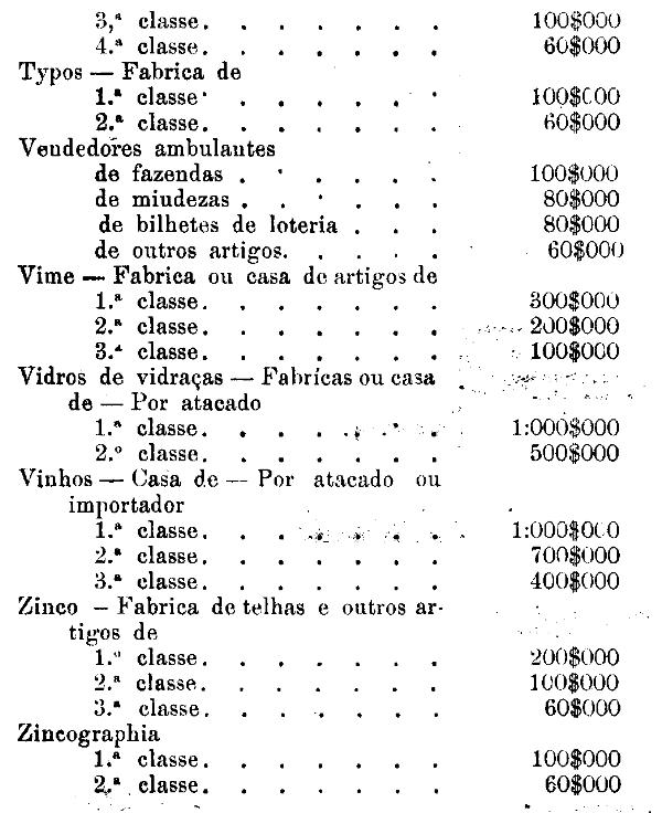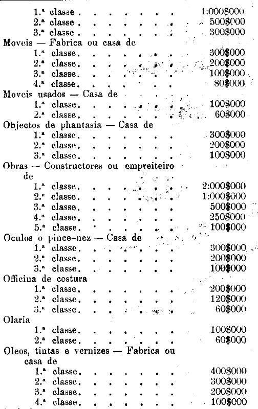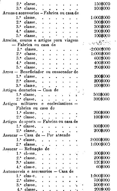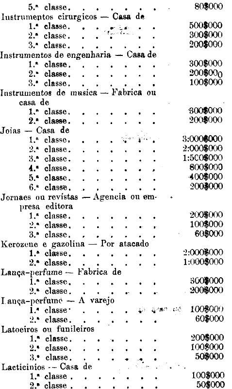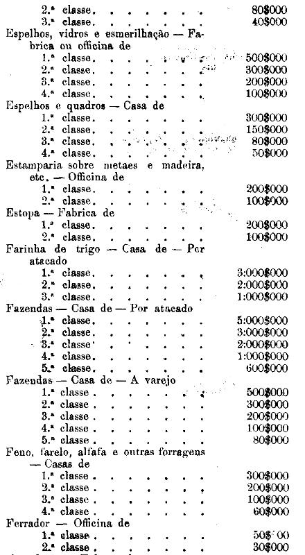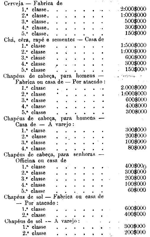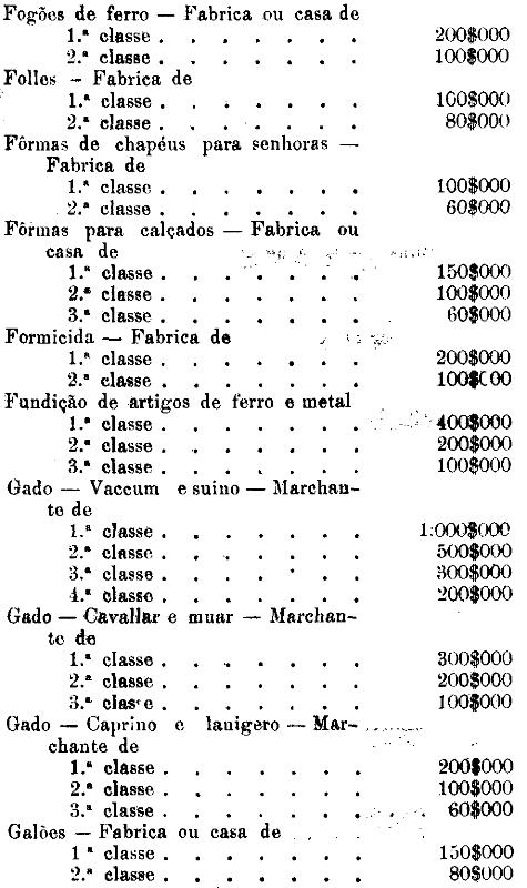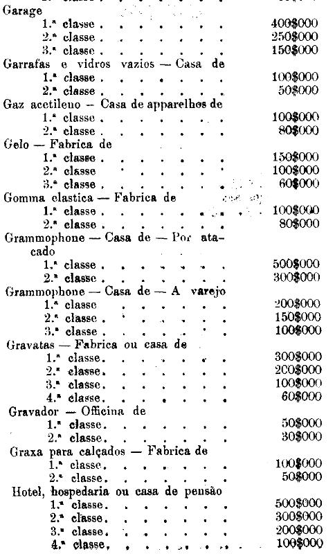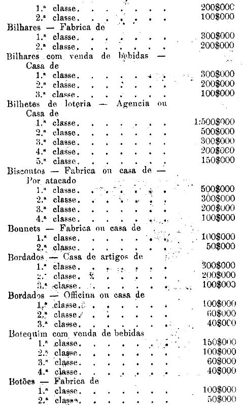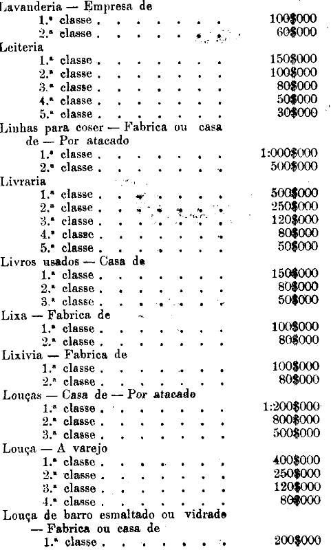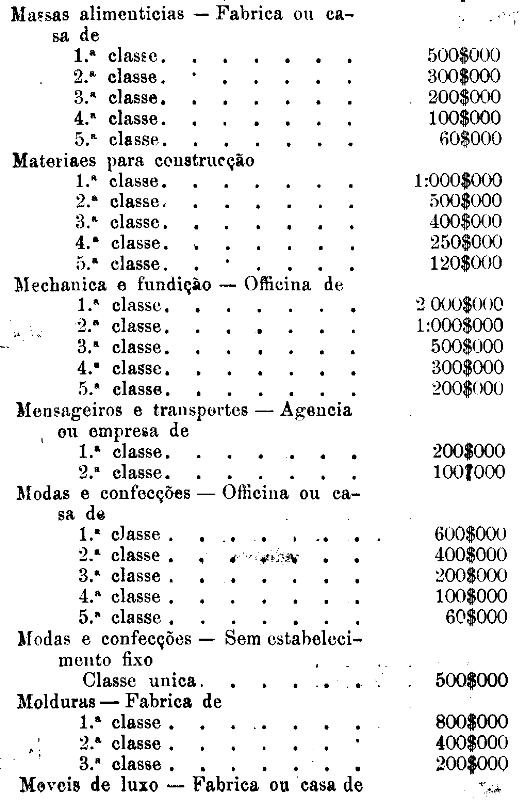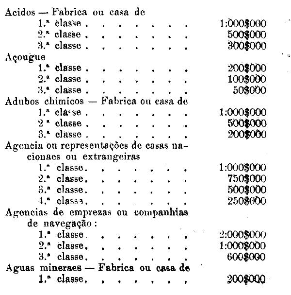 Tabella para cobrança do imposto de comercio e de empresas industriaes, a que se refere o artigo 3.º da presente lei.