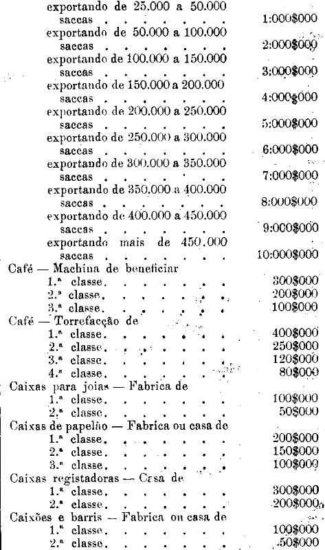 café, que pagarão integralmente o imposto da tabella; com