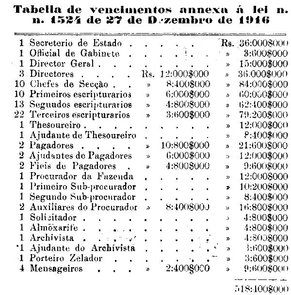 Fazenda e do Thesouro do Estado serão os constantes da tabella annexa a