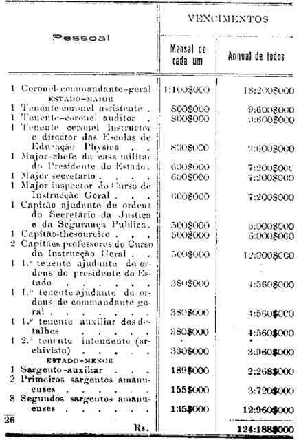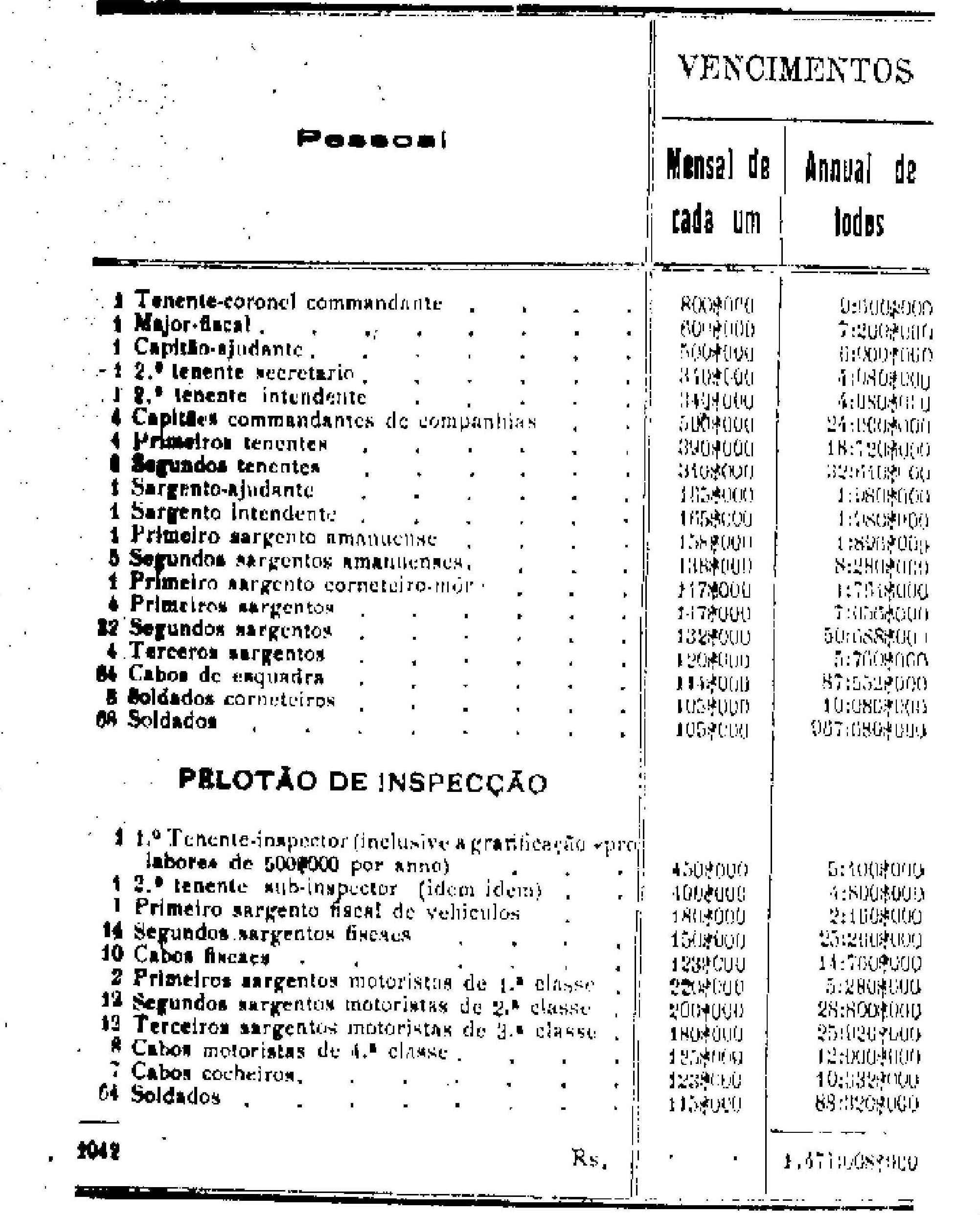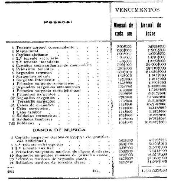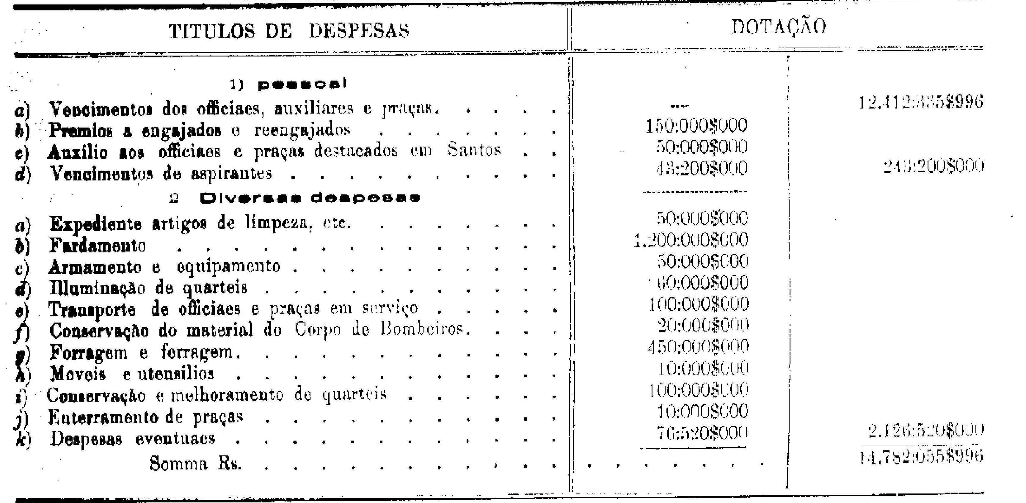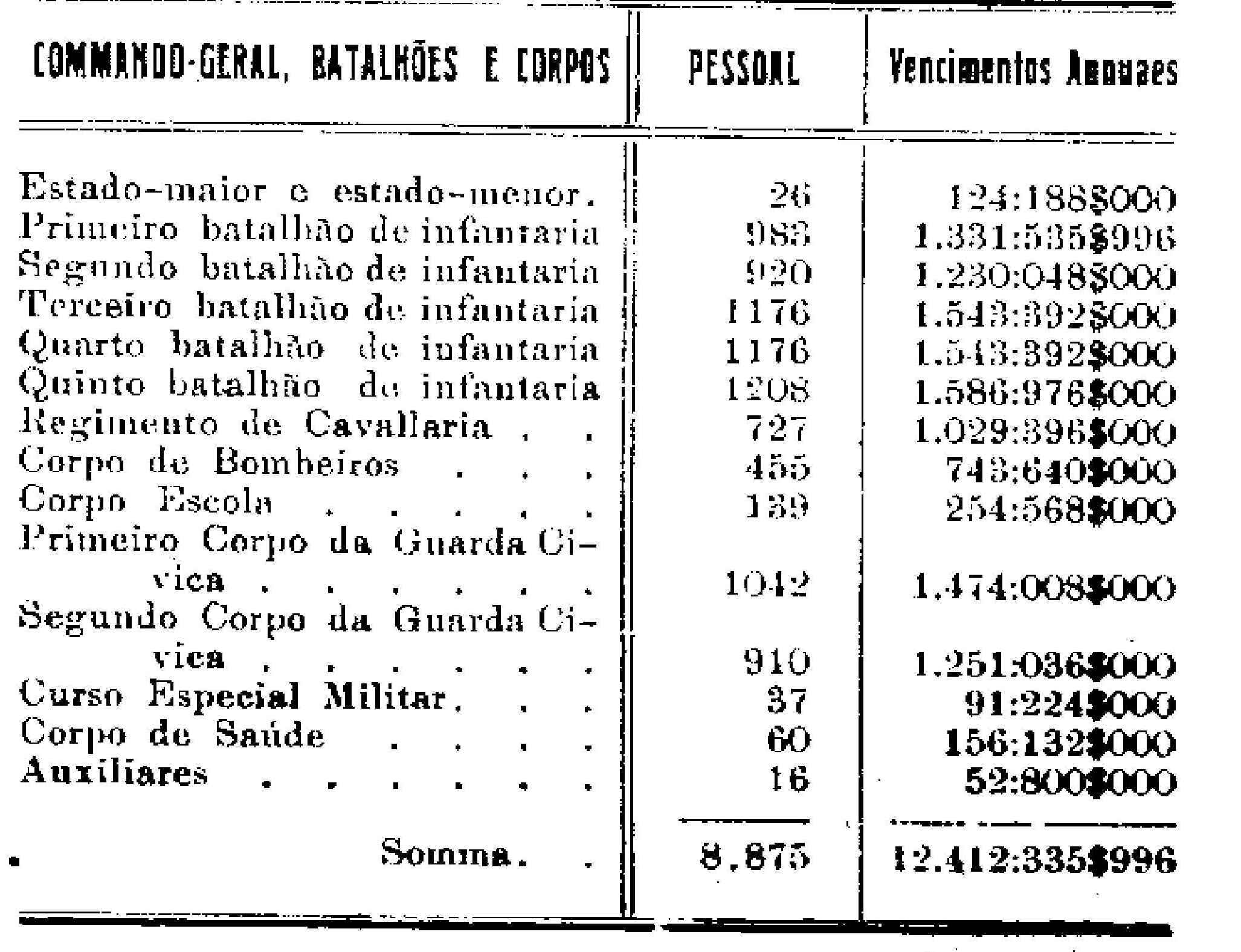 TABELLA DEMONSTRATIVA DAS DESPESAS COM A FORÇA PUBLICA EM 1919