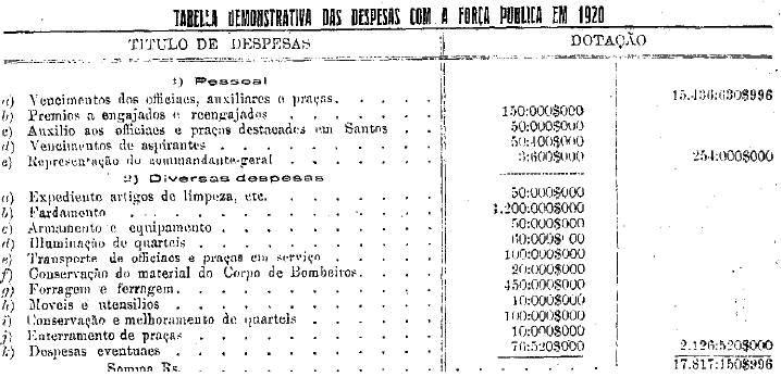 Artigo 6.º - Será abonada a gratificação extraordinaria de cincoenta mil réis (50$000) mensaes aos officiaes, e a de quinze mil réis (15$000) ás praças,quando destacados em Santos.