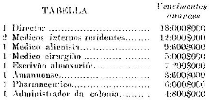 Artigo 2.º - Os vencimentos do pessoal do Hospicio serão os da tabella annexa.