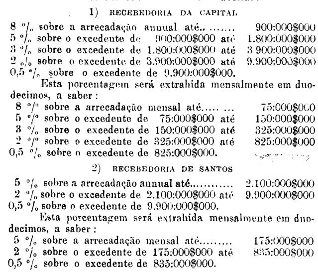 arrecadados de accôrdo com as leis n. 920, de 4 de Agosto de