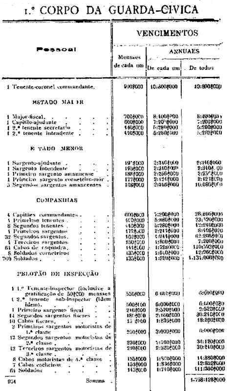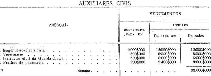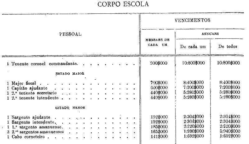 Artigo 9.º - O numero de aspirantes a officiaes não poderá exceder de 20, percebendo os vencimentos mensaes 210$000.