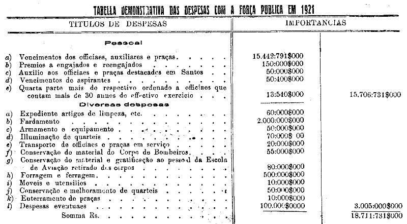 auxiliares, e as demais despesas da Força Publica, serão os fixados nas
