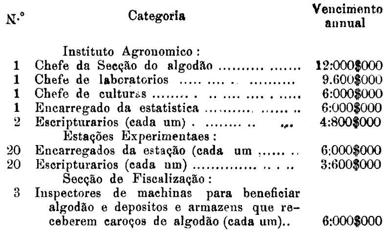 commissão os funccionaries cujo numero, categoria e vencimentos, serão